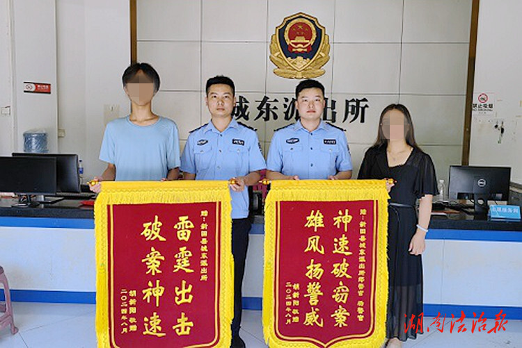 湖南法治报讯(通讯员 乐剑平)“感谢民警迅速破案,为我们追回被盗手机。”日前,新田县中山街道居民小胡等人来到新田县公安局城东派出所,分别将印有“神速破窃案 雄风扬警威”“雷霆出击 破案神速”字样的两面锦旗赠送给派出所,感谢民警破获盗窃案,为其追回被盗手机。
