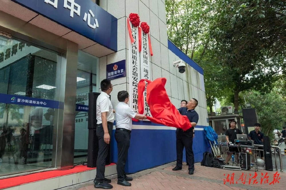 湖南法治报讯(通讯员 崔金)8月29日上午,星沙街道综治中心揭牌仪式在星沙派出所举行。县委常委、县委政法委书记伍玉联、县政府党组成员、副县长、县公安局局长王坚出席仪式,星沙街道党工委书记周创致辞,星沙街道党工委副书记、办事处主任邹子龙主持仪式。