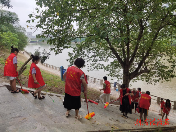 活动中,志愿者们身穿志愿者服装,手持垃圾袋、垃圾夹、扫把、铲子等工具,自行分组,在蒸水河岸捡拾烟头、纸屑、塑料瓶等,对河面漂浮物、杂草等各种垃圾进行全面打捞清理。经过大家的地毯式搜索清理,志愿者将河面、道路、绿化带的垃圾清理得干干净净,每个志愿者的垃圾袋中都是“战果累累”,红马甲成为蒸水河道的一道靓丽风景。