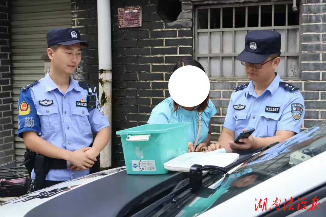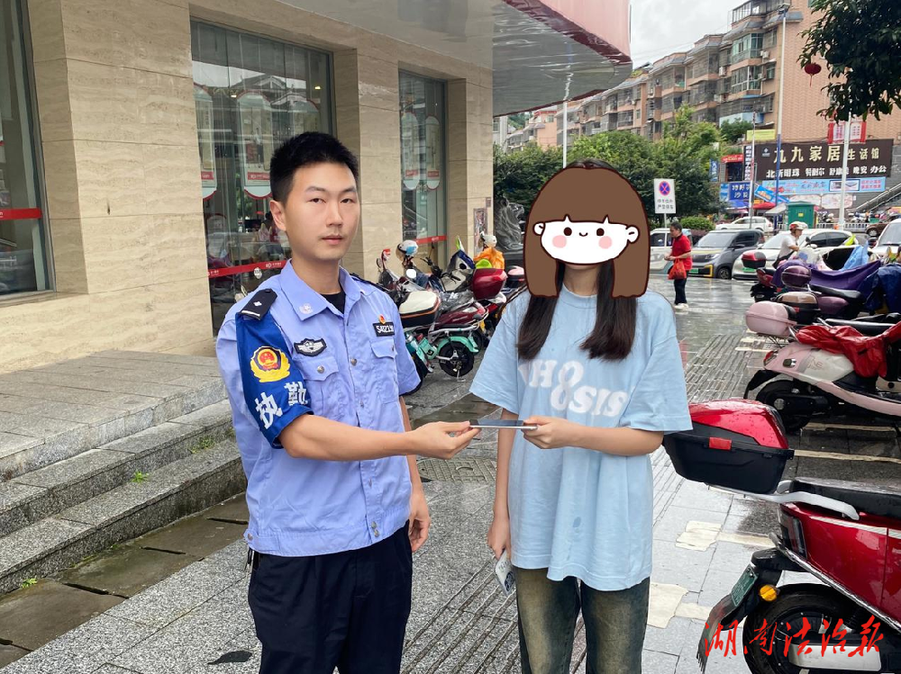 这位00后新警和同事在与路人交接完手机后联系了女孩家属,因为天气原因,大雨下个不停,担心女孩和其家属取手机不易,特意送往女孩家附近的警务室,等待女孩过来确认,确认完毕后进行了交接。
