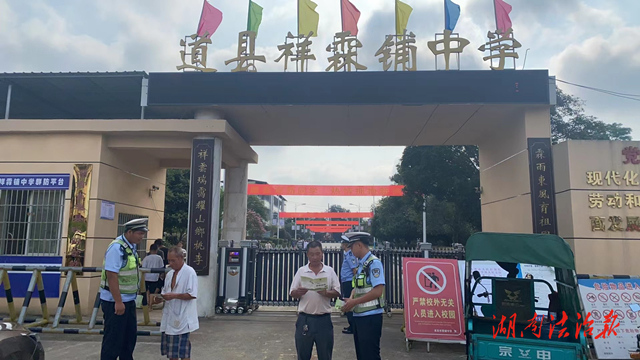 湖南法治报讯(通讯员 何斌 杨玲)为切实做好新学期开学期间交通安全管理工作,维护广大学生交通安全,连日来,道县公安局交警大队多措并举,站好“护学岗”,织密“安全网”,全力以赴护航开学季,为学生安全撑起“平安伞”。