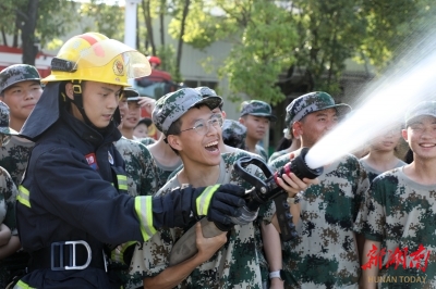 常德消防救援队伍以新生军训为契机,深入辖区学校开展消防演练。