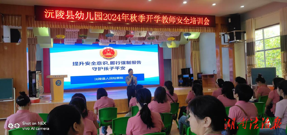 湖南法治报讯(通讯员 刘露一) 为进一步贯彻落实最高人民检察院“一号检察建议”,持续推进强制报告制度落实落细,全面提升教师队伍的安全意识和法治素养。近日,沅陵县人民检察院在沅陵县幼儿园进行2024年秋季开学教师校园安全培训会。