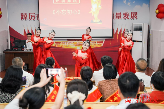 大会伊始,大屏幕播放了黎奇和谭紫薇老师原创的视频《五中日记》。这段视频记录了该校教职员工一天工作中的点点滴滴。这些小事看似平凡,但在日复一日、年复一年的循环往复中,将它们一一做好,就是平凡中的伟大,这就是教师永恒的光辉。这段视频让我们再次体味到工作的快乐,坚守的满足,更有为党育人、为国育才的自豪。之后,学校舞蹈队献上的开场舞《不忘初心》,带来了一场视听盛宴,把欢快和乐的氛围推上了高潮。