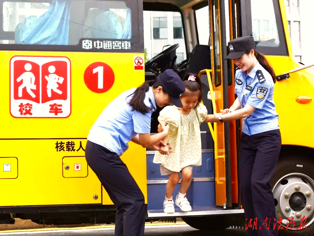 桃源公安民警护送学生安全下车