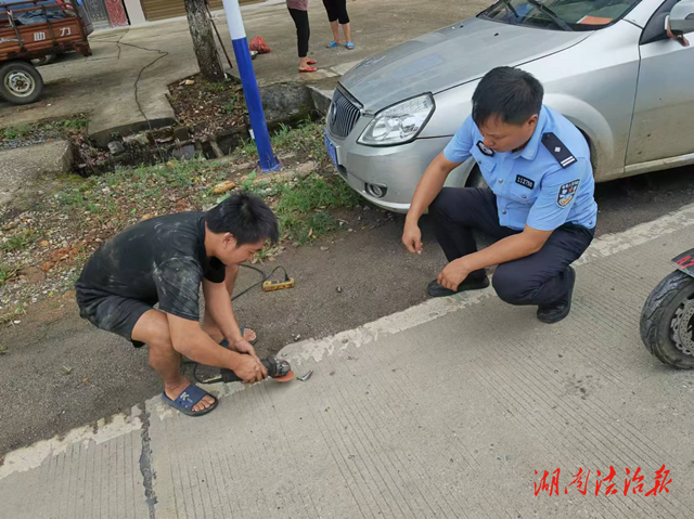 湖南法治报讯(通讯员 何斌 杨玲)9月8日,道县公安局交警大队寿雁中队在巡逻中发现并清除—国道路面上的“基座钉”,消除了一起安全隐患。