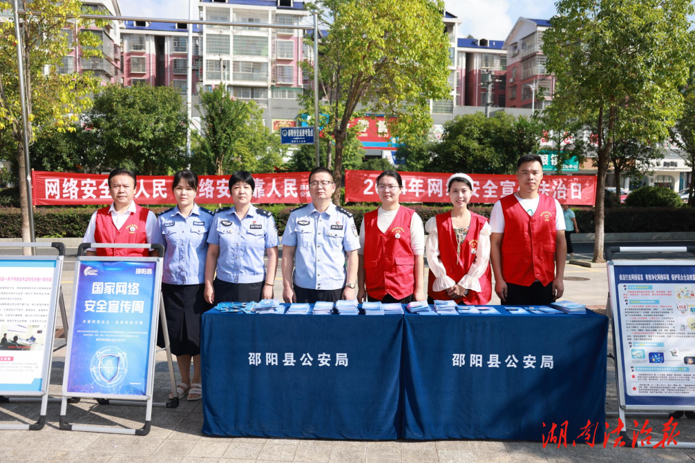 湖南法治报讯(通讯员 龙嘉莉)9月9日至15日是国家网络安全宣传周,为提升群众网络安全意识,营造健康文明的网络信息环境,9月12日上午,邵阳县公安局网安大队联合县委网信办,在邵阳县振羽广场组织开展“网络安全为人民,网络安全靠人民”的网络安全宣传周法治日活动。