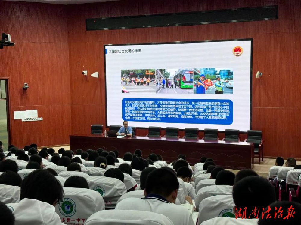 湖南法治报讯(通讯员 胡月)为落实习近平总书记关于“全面依法治国要从娃娃抓起”重要指示精神,9月13日,涟源市人民检察院党组书记、检察长廖斌携副检察长陈雅、检委会专职委员谢治中及未检干警来到涟源市第一中学,为同学们展开一堂主题为“增强法治意识 争做新时代好少年”的法治宣讲课。