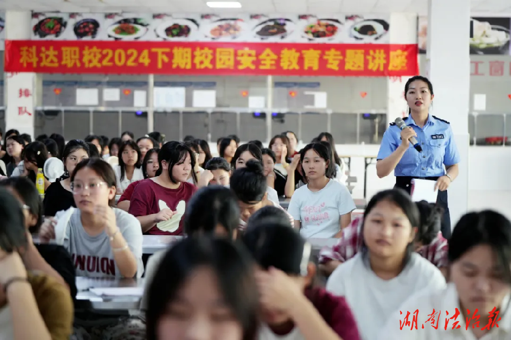 湖南法治报讯(通讯员 尹方倩 潘浩)为切实提高未成年女学生防性侵和自我保护能力,保障未成年人健康成长,9月13日,洞口县公安局“洞口妈妈”组成“利剑护蕾”女子护蕾宣讲团前往洞口县科达中等职业技术学校,为全校女学生们开展“关爱成长·守护平安”法治宣讲活动。课程由县公安局团委书记黄龙主讲,反诈中心民辅警就电信网络诈骗防范及网络安全知识与学生们进行面对面宣讲,该校女教师及女学生300余人参加。