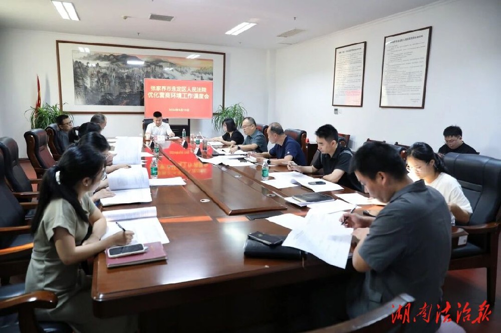 湖南法治报讯(通讯员 田谷杨)9月19日下午,永定区人民法院召开优化营商环境工作调度会,研究部署营商环境重点工作。会议由党组书记、院长杨斌主持,部分班子成员、相关业务庭室负责人及联络人参加会议。