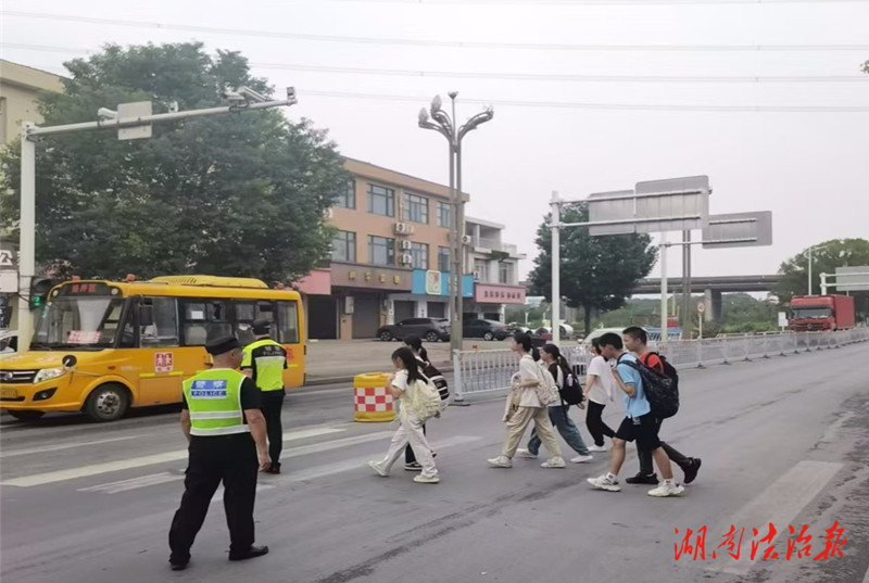 护学不间断 常德经开区交警撑起“平安伞”