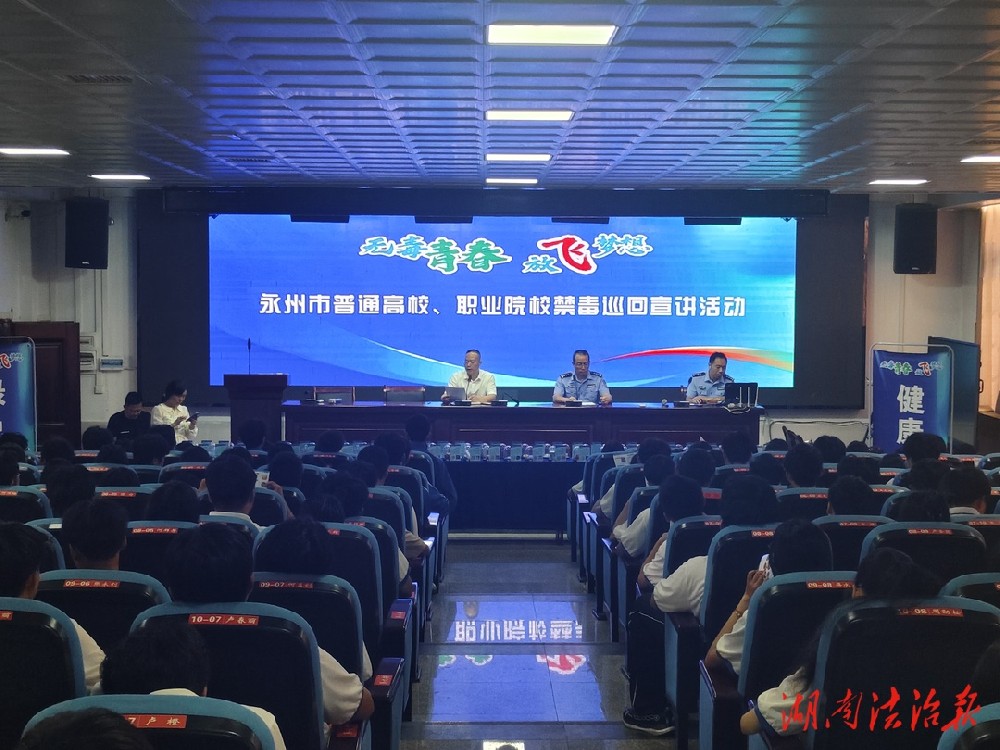 湖南法治报讯(通讯员 周慧 义亚宏)9月20日上午,为积极响应永州市禁毒宣讲活动的号召,江永职业中专隆重举办了以“无毒青春,放飞梦想”为主题的禁毒巡回宣讲活动。此次活动旨在加强校园禁毒宣传力度,让全校师生深刻认识到毒品对个人、家庭及社会的严重危害。活动由江永职中分管副校长蒋世雄主持,永州市强制戒毒所人员周玉军、李杰、李科、毛臻杰、唐宾彬等作为市禁毒团队宣讲成员出席了本次活动。