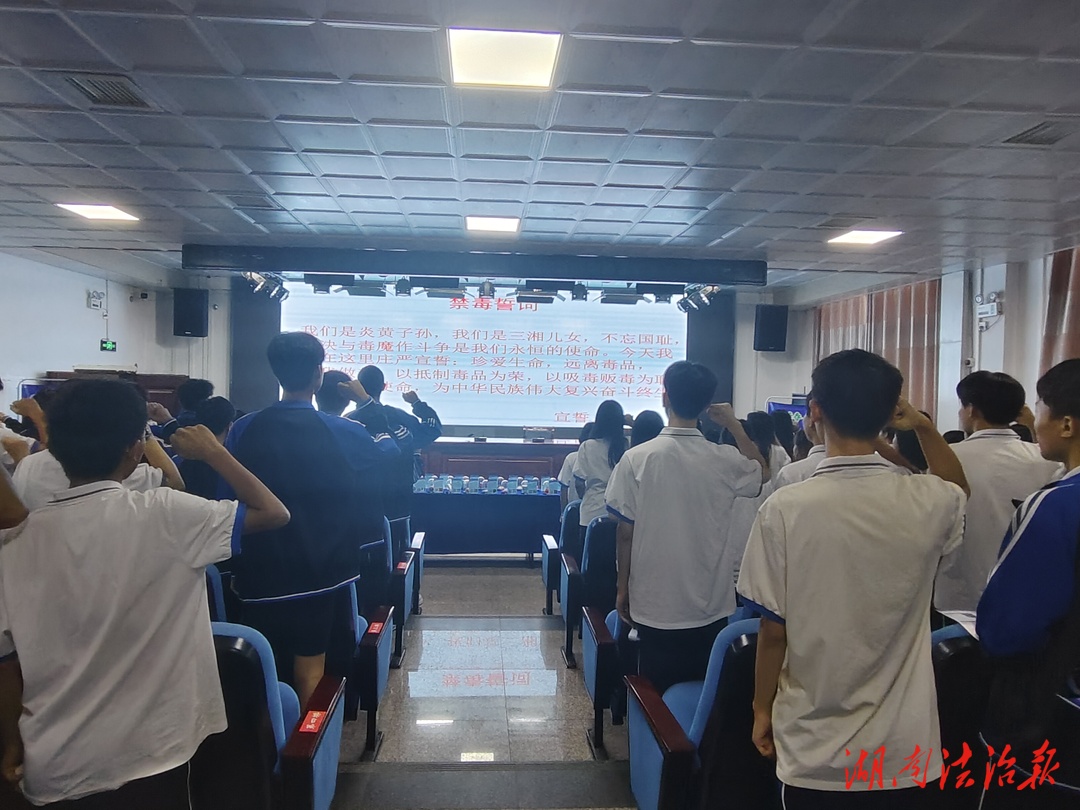 活动的高潮部分是在李警官的带领下,全体同学起立,郑重地进行禁毒誓词的宣誓活动。这一环节进一步加强了同学们远离毒品的决心,坚定了他们追求健康生活的信念。