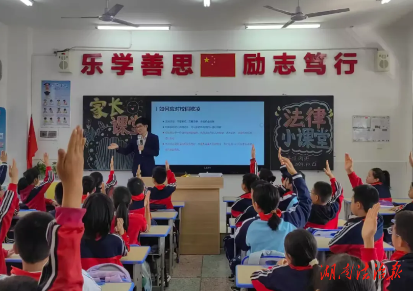 湖南法治报讯(通讯员 彭春朝)俗话说:“没有规矩,不成方圆”。那规矩是什么呢?它就像是一位无声的老师,时刻教导着人们,在做人做事时要紧紧遵循法律法规。10月25日,湖南滳招律师事务所的彭师琦律师走进岳阳楼区东升小学181班“家长课堂”,为孩子们开启了一场法律知识启蒙之旅。