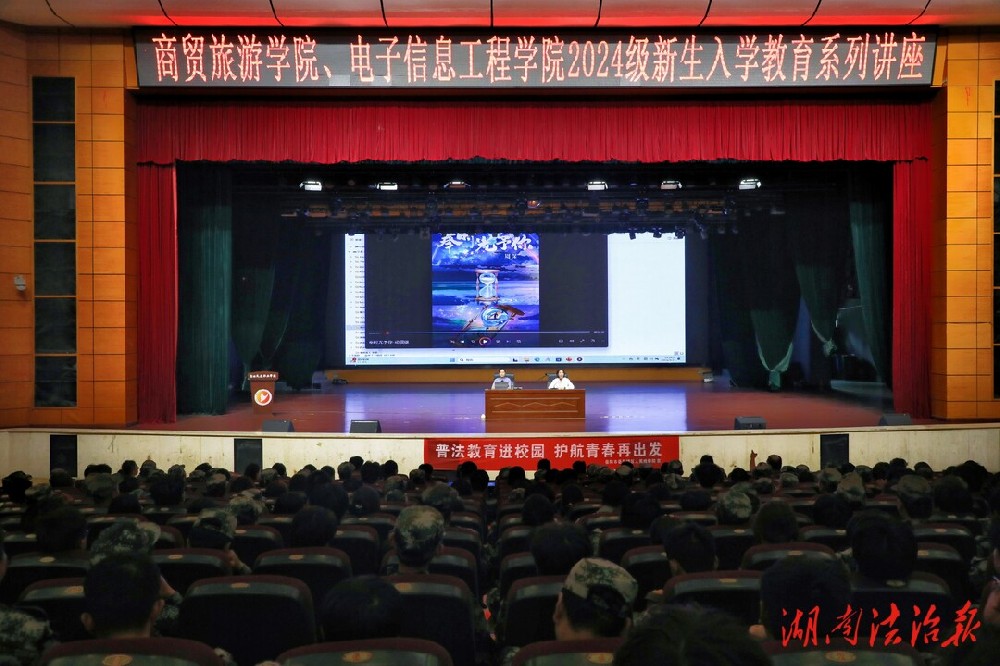 9月26日至27日,岳阳楼区人民检察院未检专干来到湖南民族职业学院,围绕“筑梦青春,与法同行”主题,向艺术设计学院、商贸旅游学院、电子信息工程学院1800余名新生带来了一场生动的法治宣讲课。检察官对未成年人违法犯罪的成因及危害后果进行全面细致的讲解,引导同学们要树立正确的价值观和人生观,自觉抵制不良行为,远离违法犯罪活动。