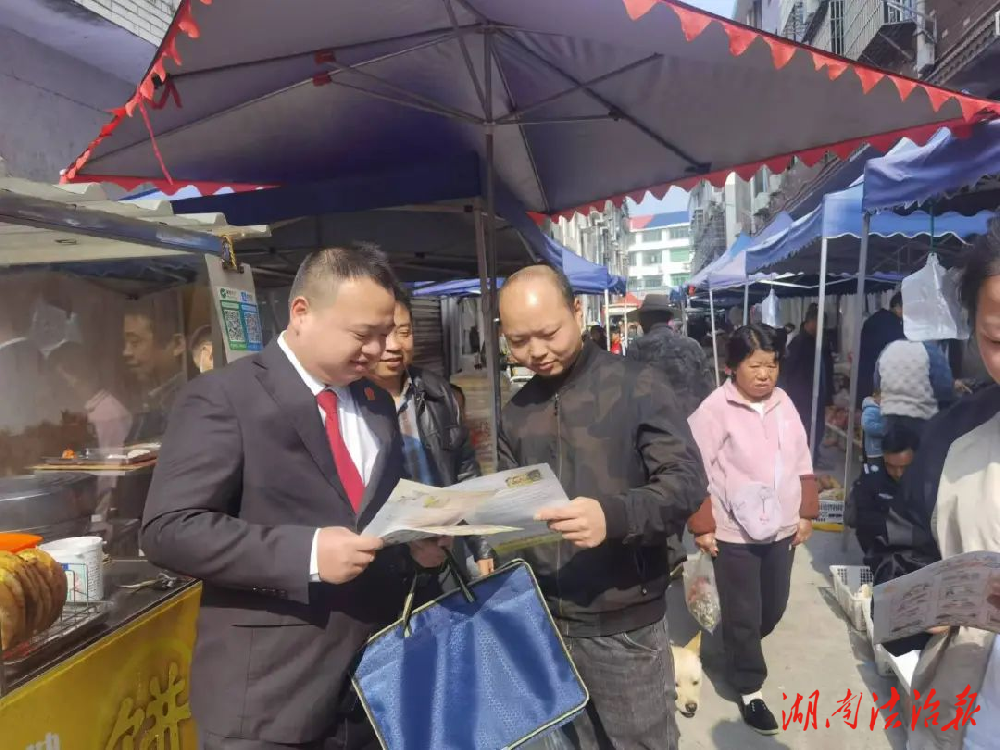 湖南法治报讯(通讯员 姚晶 姚华辉)为持续提升居民的法律意识,营造尊法学法守法用法的浓厚氛围,近日,安化县人民法院江南人民法庭干警趁着滔溪镇赶集的日子,来到集市开展普法活动,为前来赶集的群众送上“法律大礼包”。