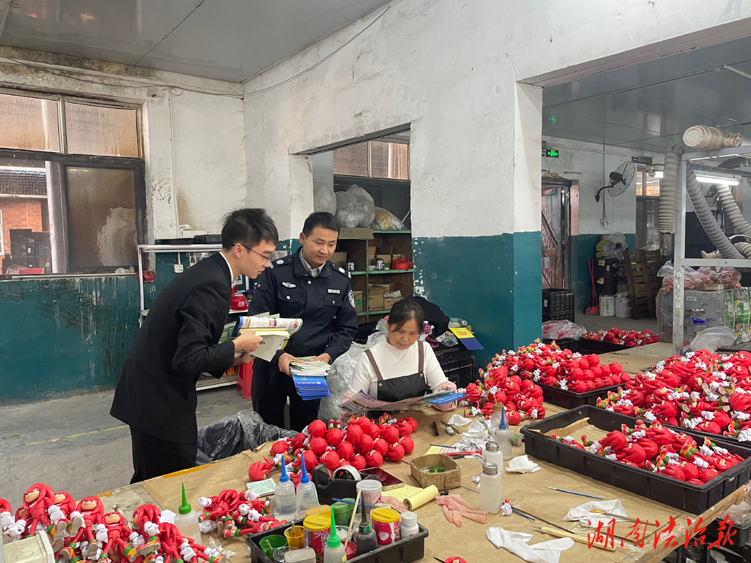 为进一步优化法治化营商环境,助力辖区企业发展,提升企业学法、用法意识,10月30日,资兴法院兴宁法庭联合兴宁司法所走访资兴市伟智玩具有限公司、郴州祥久电子有限公司,开展“送法进企业”普法宣传活动。