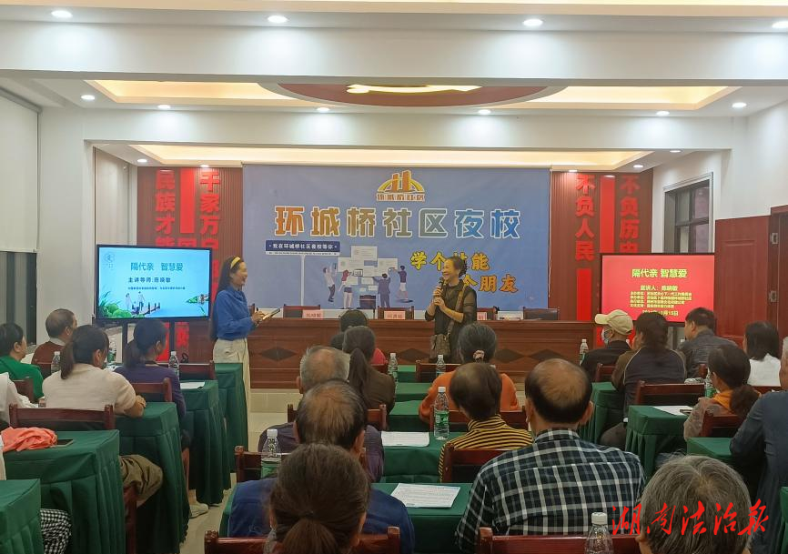 “社区夜校”邀请苏仙区关工委联合郴州市首幸文化传播公司开展“隔代亲 智慧爱”主题家庭教育授课,授课讲师陈晓敏通过人物雕塑的方式,直观形象的讲述隔代教育的弊端,为何越来越多的青少年出现厌学、打架等不良行为背后的家庭教育问题的原因。课后大家积极交流分享课后心得体会。