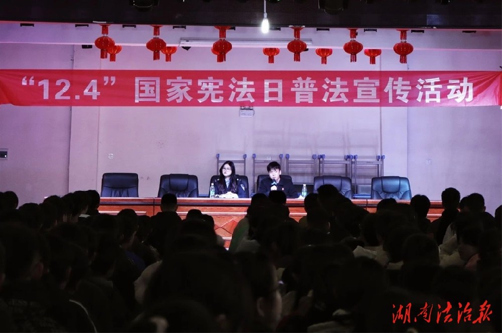 湖南法治报讯(通讯员 彭凯 胡语桐)12月4日,正值国家宪法日,慈利县人民法院江垭人民法庭携手当地司法所,走进江垭中学,为该校中学生带来了一场别开生面的普法宣传活动。此次活动旨在进一步普及宪法知识,增强青少年的法治观念和法律意识。