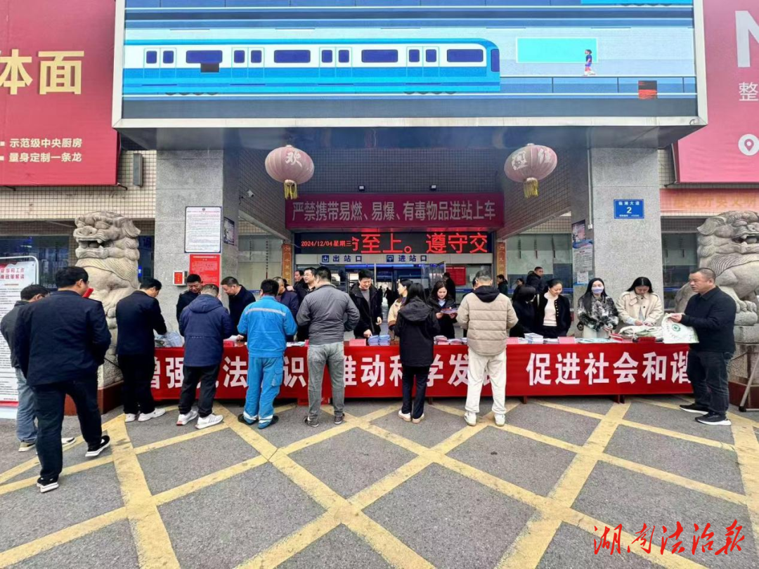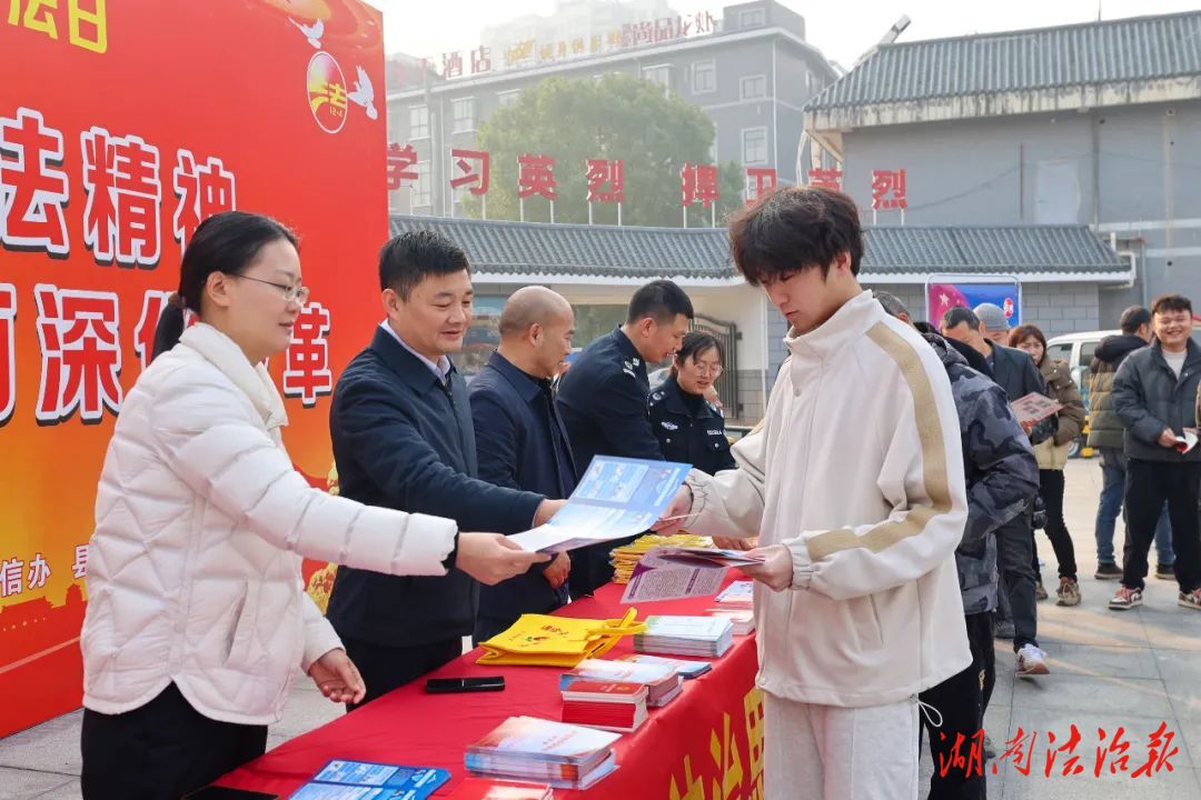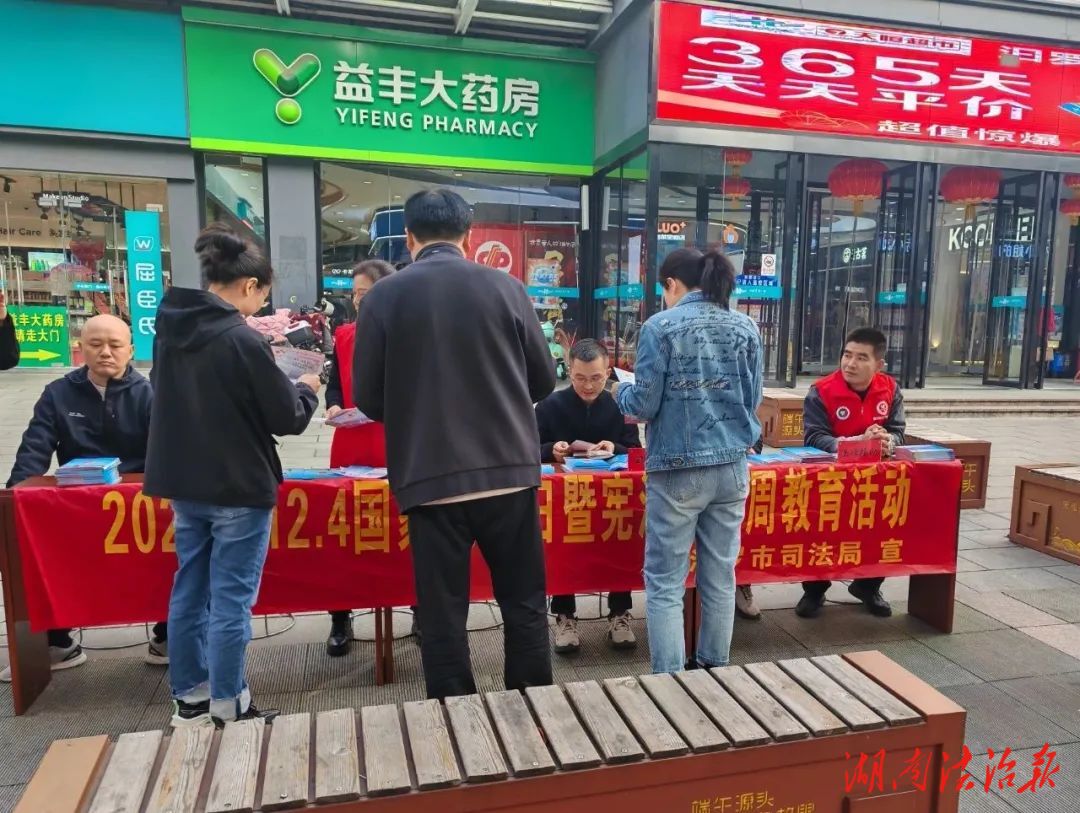 12月4日临湘市司法局组织市委网信办、市农业农村局、市民政局、市城管局、市水利局、市应急管理局等部门单位在汽车站人流量密集地段开展普法宣传活动,14个乡镇(街道)在各辖区同步开展活动。