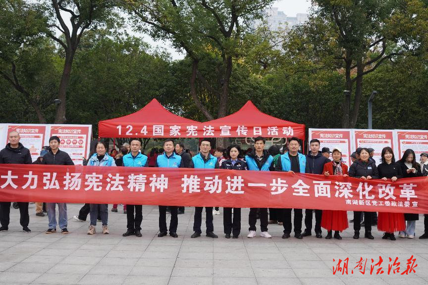 12月2日,南湖新区党工委政法委(司法局)牵头组织多部门在南湖广场开展以“大力弘扬宪法精神,推动进一步全面深化改革”为主题的宪法宣传周活动。