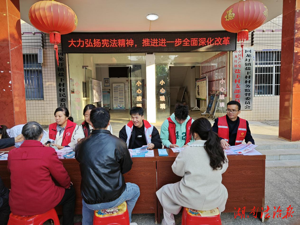 湖南法治报讯(通讯员 蒋晓希)12月3日上午,回龙圩管理区司法局联合区党委政法委、团区委、区卫健局等单位,利用赶集在区盐下村委会开展2024年“宪法宣传周”活动,主题为:“大力弘扬宪法精神 推动进一步全面深化改革”。