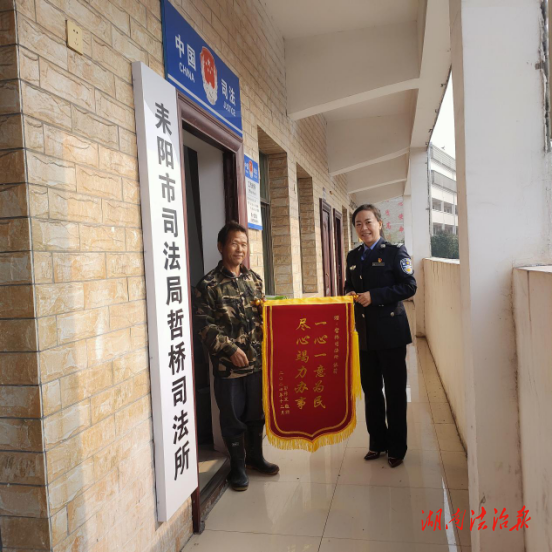 湖南法治报讯(通讯员 姚芬芬 张莉)“谢谢您的帮助,帮我们村民讨回了工资……”12月4日,在耒阳市哲桥司法所,长源村村民彭某连连道谢,并将一面写有“一心一意为民 尽心竭力办事”的锦旗交到哲桥司法所所长张莉手中。