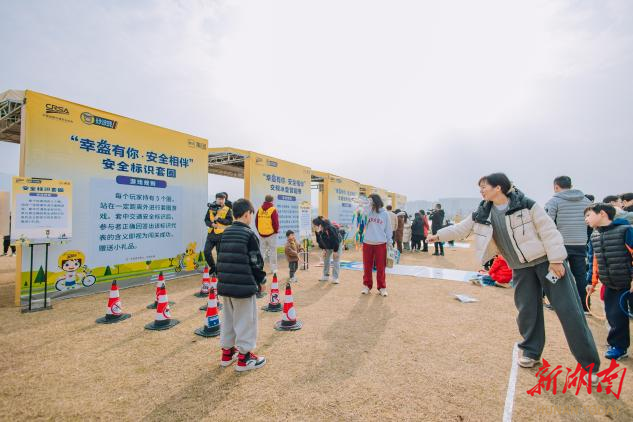 在交通安全体验营不远处的游戏互动区,摊位吸引了许多小朋友聚集。交通大富翁、飞盘击落违章、安全标识套圈、交通信号视力表、交规冰壶智趣赛等游戏,不仅培养了参与者的交通知识,还让他们在游戏中收获了乐趣。