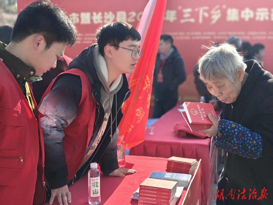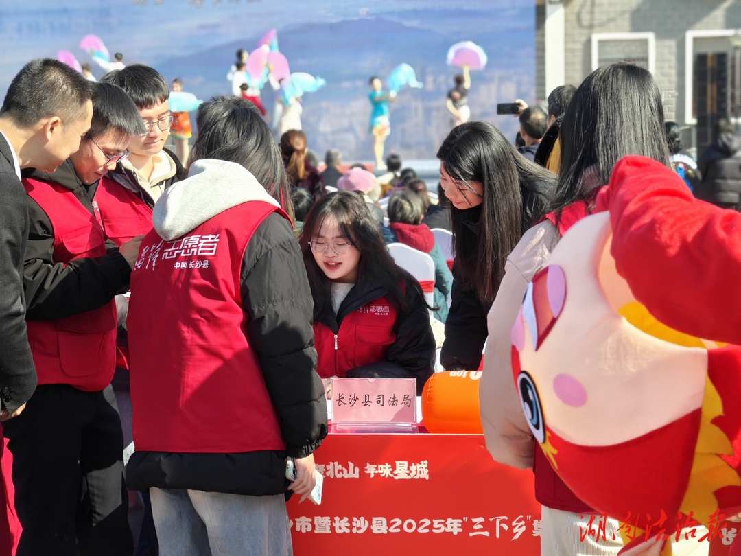 湖南法治报讯(通讯员 周海波)1月16日上午,长沙市暨长沙县2025 年“三下乡”活动在长沙县北山镇综合文化站广场开幕,现场年货集市年味十足。其中,由长沙市司法局、长沙县司法局组织的“送法下乡”活动尤为引人注目。