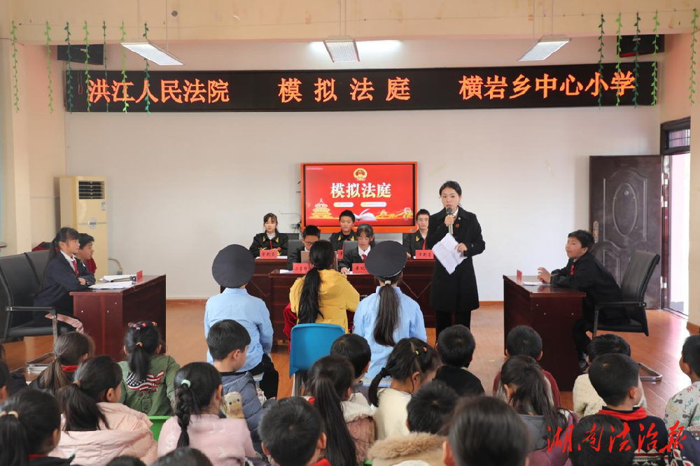 湖南法治报讯(通讯员 龙淑芬)“学法以明道,用法以立身。”为教育引导广大青少年尊法、学法、守法、用法,争做新时代好少年。近日,由洪江人民法院党组副书记、副院长赵东吾带队前往横岩乡小学举行的模拟法庭活动拉开序幕,学生“主审”,老师及其他同学“旁听审理”,实现了以案说法、以案学法、以案懂法的效果。