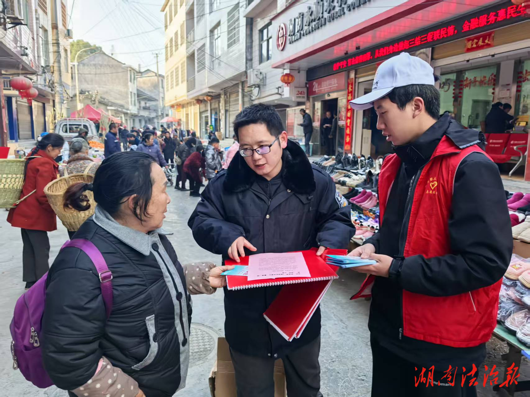 湖南法治报讯(通讯员 张洪泉)春节将至,返乡人员日益增多,为进一步提高广大群众的法治意识,推进法治乡村建设,1月15日,青坪镇人民政府组织青坪司法所工作人员、返乡大学生志愿者、在集镇开展送法下乡活动。