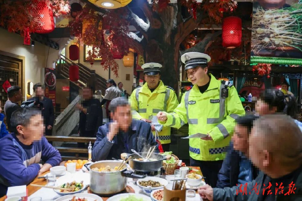 夜晚时期,市民聚会聚餐娱乐等活动增加,酒驾醉驾交通违法行为易发多发。民辅警根据重点时段人员聚餐特点,走进群众夜生活较集中的地方,开展上门宣教服务活动,把交通安全知识送到餐桌上。