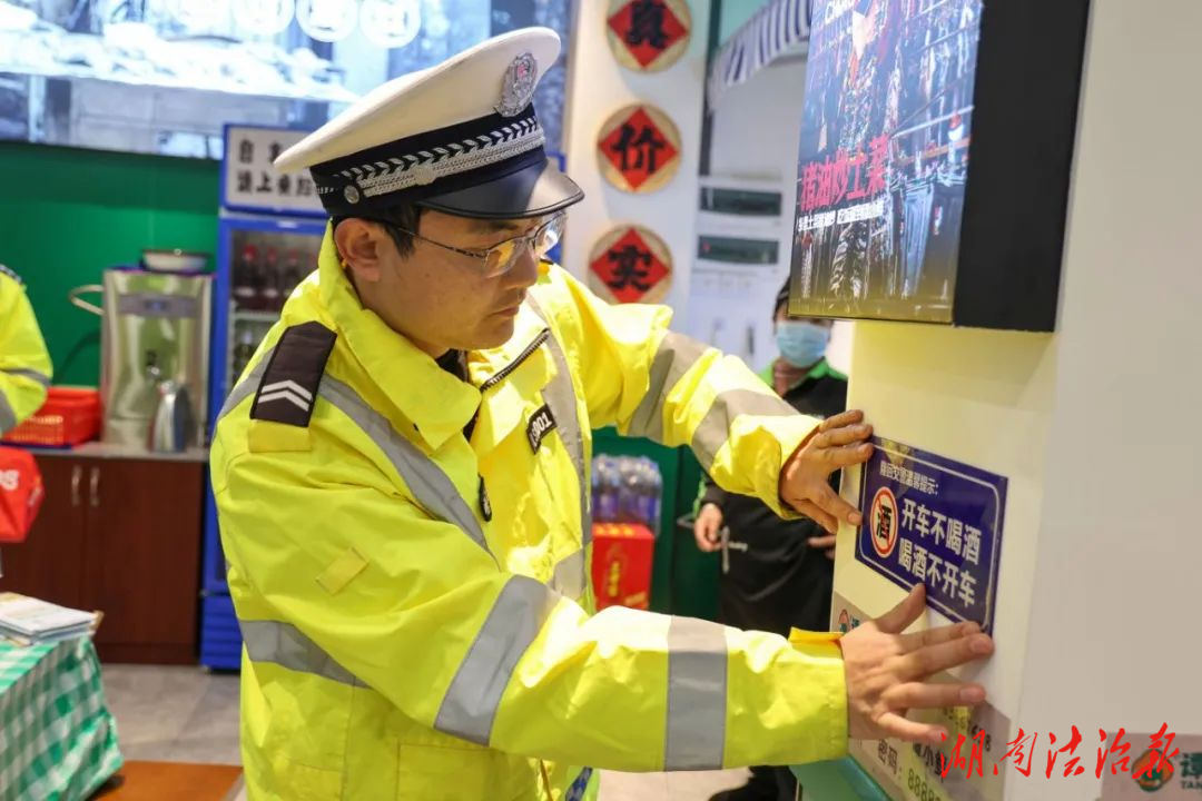 活动中,民警通过发放宣传折页、现场以案释法等形式,对餐饮场所内的消费者进行酒后不开车宣传教育,以及讲授酒驾、醉驾等违法行为的危害性。并将“喝酒不开车 开车不喝酒”宣传提示标语张贴到餐馆的收银台、楼梯间、电梯等公共区域显眼的位置,时刻提醒就餐者,拒绝酒后驾驶。