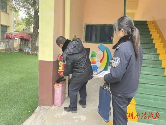开学前夕,衡山公安民辅警深入辖区各中小学幼儿园开展“拉网式”排查,重点对校园进出通道硬质防冲撞设施设备、安保配备力量、消防设施设备、“一键式报警”和视频监控等安全防范设施进行全面检查,及时发现和消除安全隐患,督促学校严格落实安全主体责任,加强校园内部安全管理措施,切实筑牢校园安全防线。