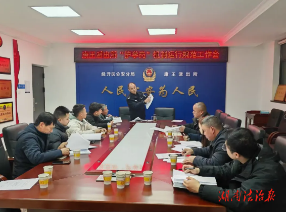 ▲ 民警组织召开“护学岗”机制运行规范工作会。