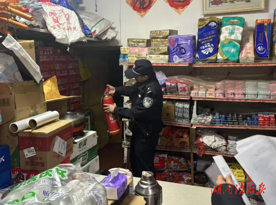 ▲ 民警开展校园周边场所消防安全检查及宣传。