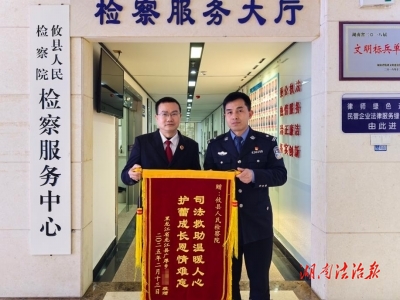 湖南法治报讯(全媒体记者 王薇 通讯员 刘思思 武瑶)“谢谢检察官叔叔阿姨,救助金我已经收到了!你们不远千里来帮助我,让我走出了阴霾!”2月18日,攸县人民检察院收到一个来自黑龙江省龙江县的包裹,里面是一面印有“司法救助温暖人心,护蕾成长恩情难忘”的锦旗,还有一封被救助人郭某的感谢信,感谢检察官跨越3000公里对她的救助。