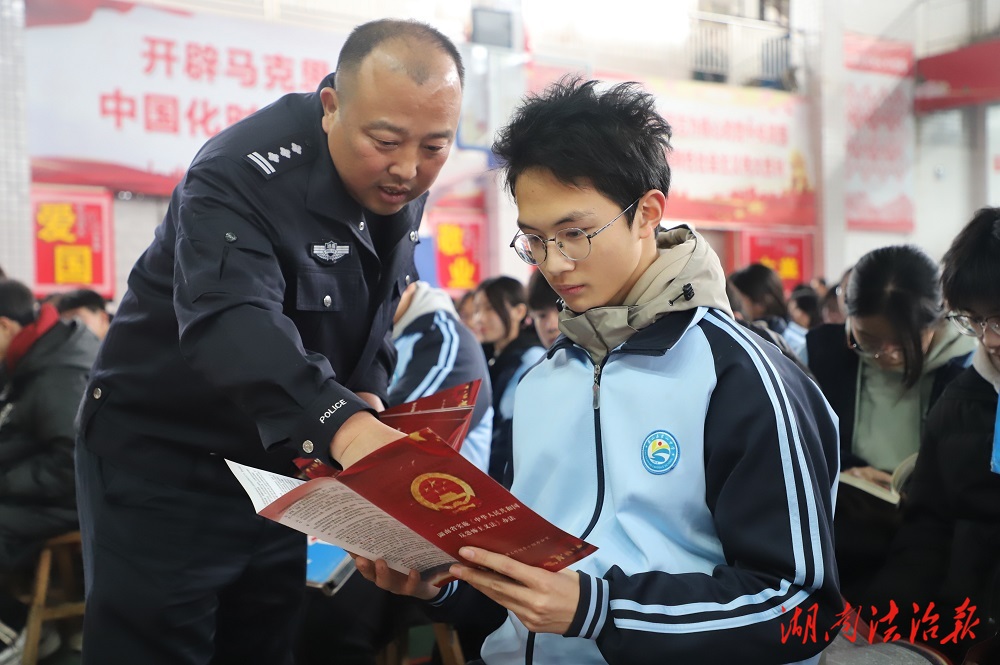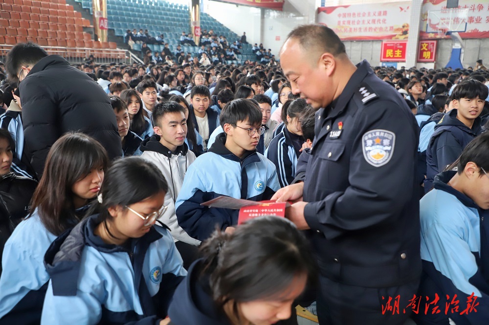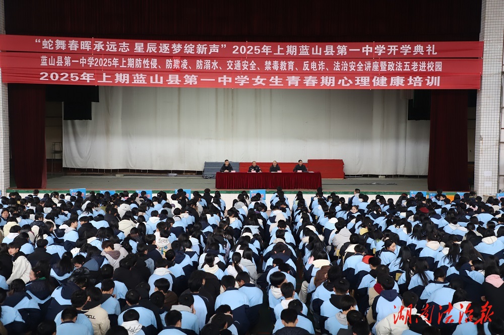 为进一步提高未成年人的法律意识和自我保护能力,促进青少年健康成长, 2月24日,蓝山县公安局城北派出所民警在蓝山一中开学典礼上为全校师生送去了新学期的“开学第一课”。