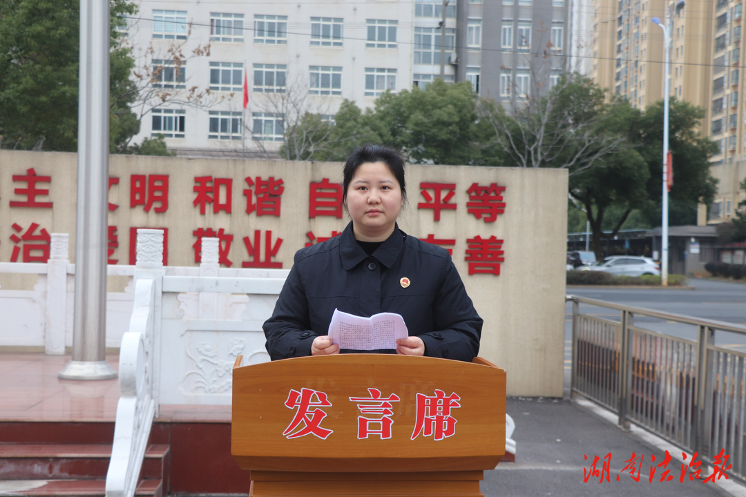 2月26日,汉寿县人民检察院举行升旗仪式,活动由党组副书记、副检察长谢永远主持,全体检察人员参加。