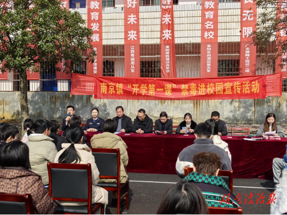 湖南法治报讯(通讯员 廖欢欢 谢妍)新学期伊始,为进一步增强青少年法治意识,预防和减少校园欺凌和毒品犯罪,2月27日,耒阳市司法局南京司法所联合南京镇政府、南京派出所走进南京中学,利用开学典礼的契机,为全校师生带来了一堂生动的法治教育课。