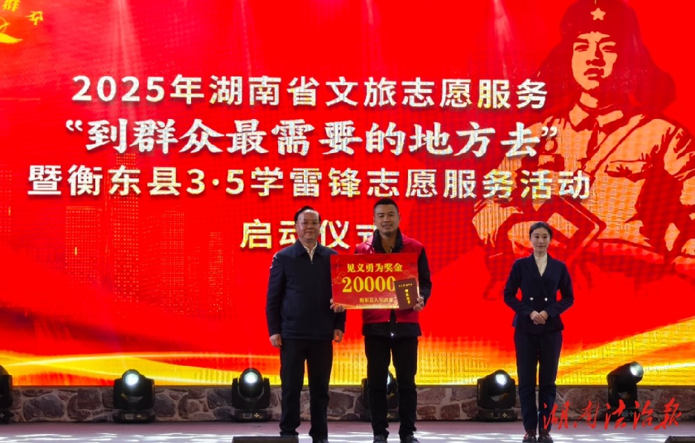 湖南法治报讯(通讯员 郭诗周) “他以果敢行动,忠实践行雷锋精神里的‘无私奉献’。面对素不相识的落水者,他毫不犹豫,瞬间抛开个人安危,无畏跃入冰冷河水。”3月4日上午,在2025湖南省文旅志愿服务“到群众最需要的地方去”暨衡东县3.5学雷锋志愿服务活动启动仪式上,县委常委、政法委书记李建华向“见义勇为”先进个人许达颁发了荣誉证书及奖金。