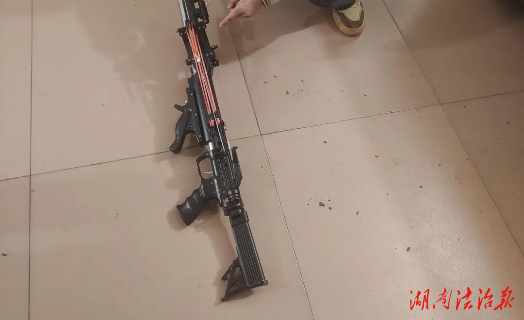 今年2月,印塘派出所民警在工作中获悉,辖区一男子在网上非法购买了管制器具。民警立即开展调查。调查过程中,民警在贺某家中查获管制钢珠弩一把。