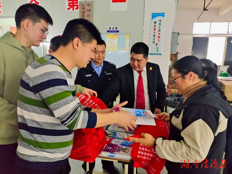 湖南法治报讯(通讯员 欧阳宁 康继达)为进一步优化法治化营商环境,提升企业法治意识,助力县域经济社会高质量发展。江华瑶族自治县司法局码市镇司法所主动延伸司法服务触角,创新法律服务模式,着力打造“大普法”格局,以“订单式”普法为企业送上“法治礼包”,打通司法服务企业的“最后一公里”。