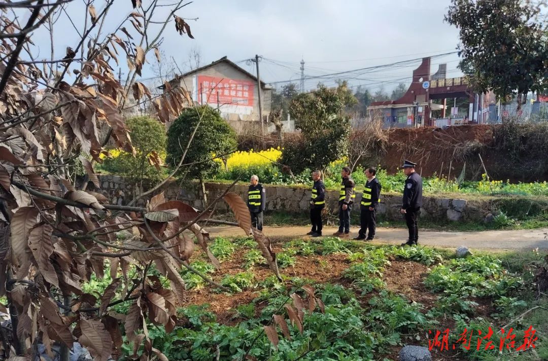 湖南法治报讯(通讯员 龙嘉莉 唐江涓)为深化平安辖区建设,3月12日,邵阳县公安局黄荆派出所民辅警带领夫夷义警黄荆分队队员,全面投入辖区治安巡逻防控工作。针对春季治安特点和禁种铲毒关键节点,重点加强对田间地头、村头院尾、重点关注人员密集场所和治安复杂区域等区域的巡查力度,全力消除安全隐患,织密治安防控网络。