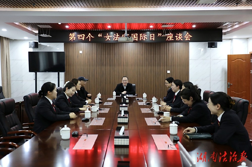 湖南法治报讯(通讯员 何娅婷)3月13日,衡阳市蒸湘法院组织召开第四个“女法官国际日”座谈会,党组书记、院长匡梓精主持会议并讲话,8名女法官代表参会。