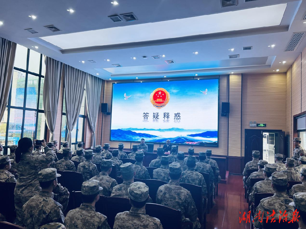 “救助的情形有哪些?救助的方式和标准是什么?”课上,控告申诉检察部检察官彭大林围绕国家司法救助政策详细介绍了救助范围、救助程序以及2025年湖南省检察机关涉军人军属司法救助工作计划等内容,结合实际救助案例,为官兵们生动解读了检察机关在涉军人军属司法救助工作中的相关规定。