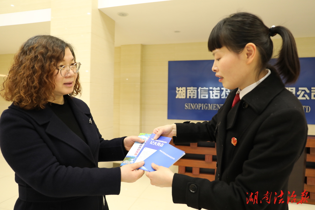 一行人还为公司高管送上了《湖南省优化营商环境条例》和《<湖南省优化营商环境条例>十二大热点》等宣传手册,为送法入企划上了圆满的句号。
