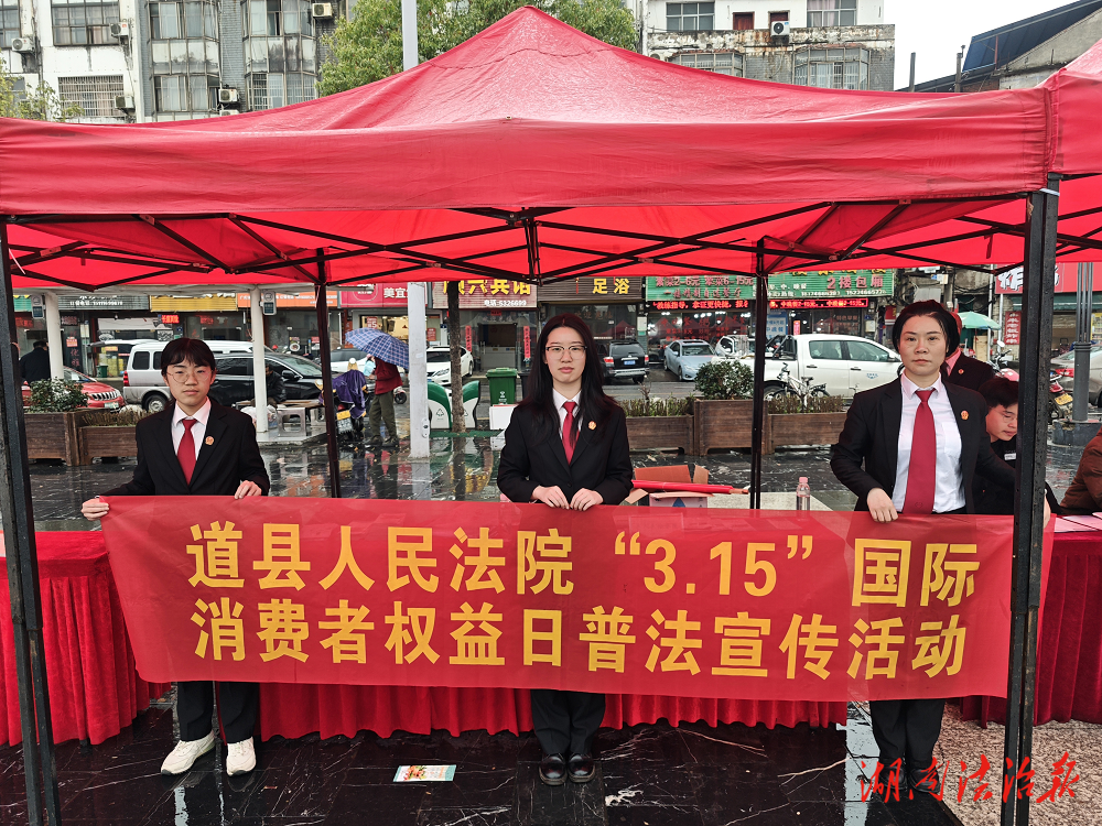 湖南法治报讯(通讯员 廖家仪)为加强普法宣传力度,帮助消费者运用法律维护自身合法权益,近日,道县人民法院组织干警在敦颐广场开展“3.15”国际消费者权益日普法宣传活动,帮助消费者答疑解惑。