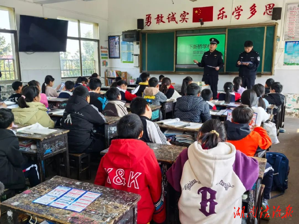 “同学们,如果明星私信你说免费送签名照和周边产品,但要你拿妈妈的手机扫码验证,该怎么做?”在笔架山乡下新桥学校,民警结合近期发生的“未成年人游戏充值诈骗”真实案例,通过情景模拟、互动问答等形式,为500余名小学生量身定制反诈课程。