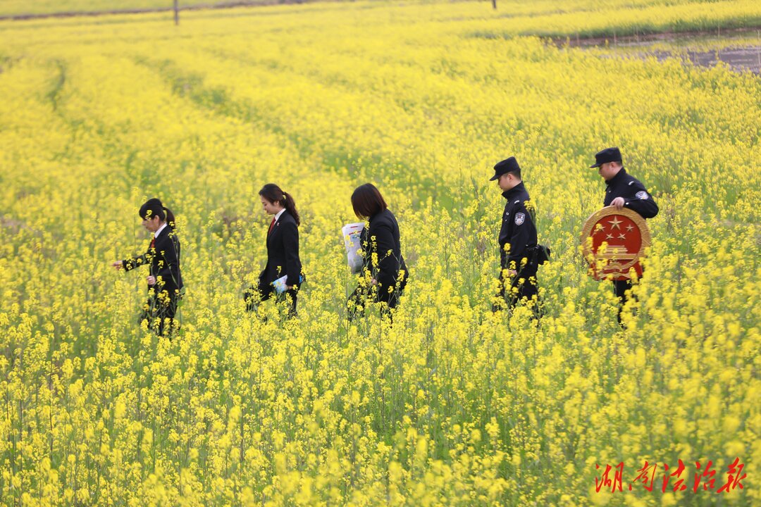 春色不只在景区,更在田间乡野。干警们踏着松软的田埂,穿过翻涌的油菜花海,叩开周边农户的家门。“土地流转合同怎么签才规范?”“自家种的农产品被拖欠货款咋维权?”面对村民的疑问,干警们用方言唠家常、讲案例,将晦涩的法条转化为“听得懂、用得上”的乡土话。